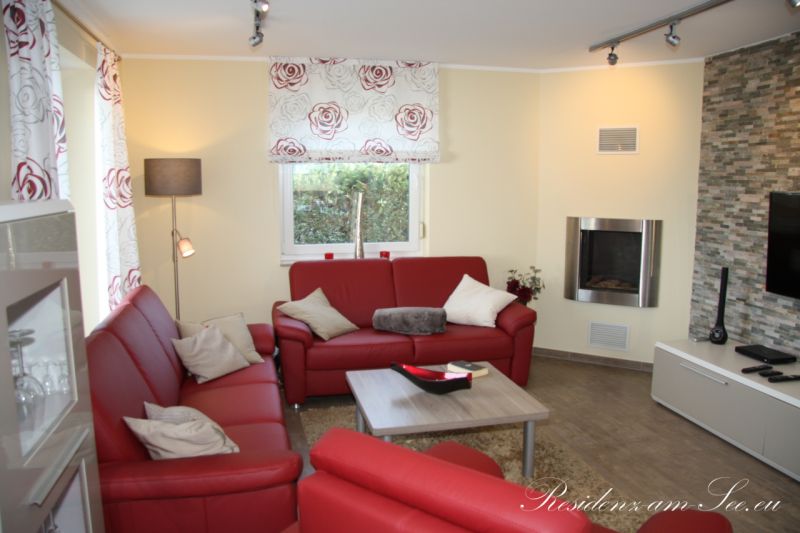 Der Wohnraum ist unter anderem ausgestattet mit zwei Sofas sowie einem Sessel. Der per Knopfdruck steuerbare Gaskamin sorgt im Winter für wohlige Wärme und eine wunderbar gemütliche Atmosphäre. Damit es Ihnen an nichts fehlt verfügt der Raum zusätzlich über einen DVD-Player, eine HiFi-Anlage und Sat TV. Selbstverständlich haben wir hier für die gemütlichen Abende einige Bücher, DVDs und Spiele für Sie bereitgestellt.
